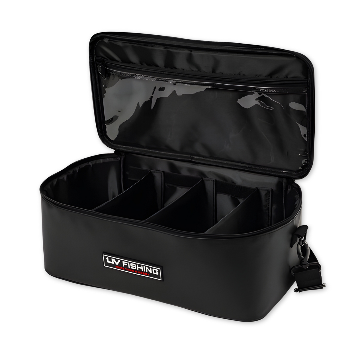Measuring 16" x 8" x 7.5", the Tackle Tote is engineered to solve the storage headache of bulky hard-shell soft bait packaging that won't fit in standard bags.